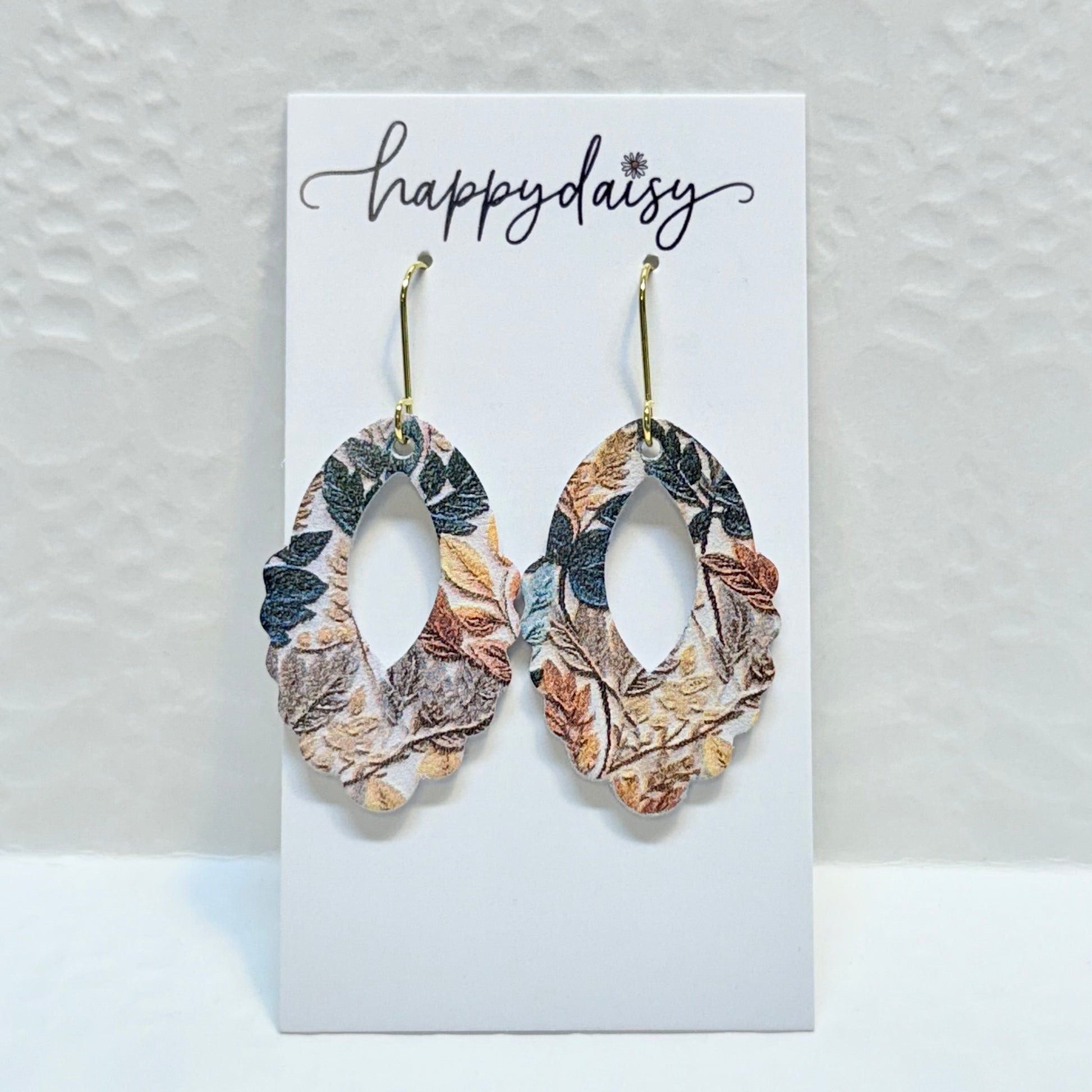 Welcome the fall season with our Leaves of Fall Leather Earrings. Pair these earrings with your favorite fall outfits, from cozy sweaters to chic blazers. Their warm colors and floral design make them a perfect accessory for pumpkin patches, fall festivals, or simply enjoying a crisp autumn day. They have stainless steel ear wires and are so lightweight, you'll forget you're wearing them!