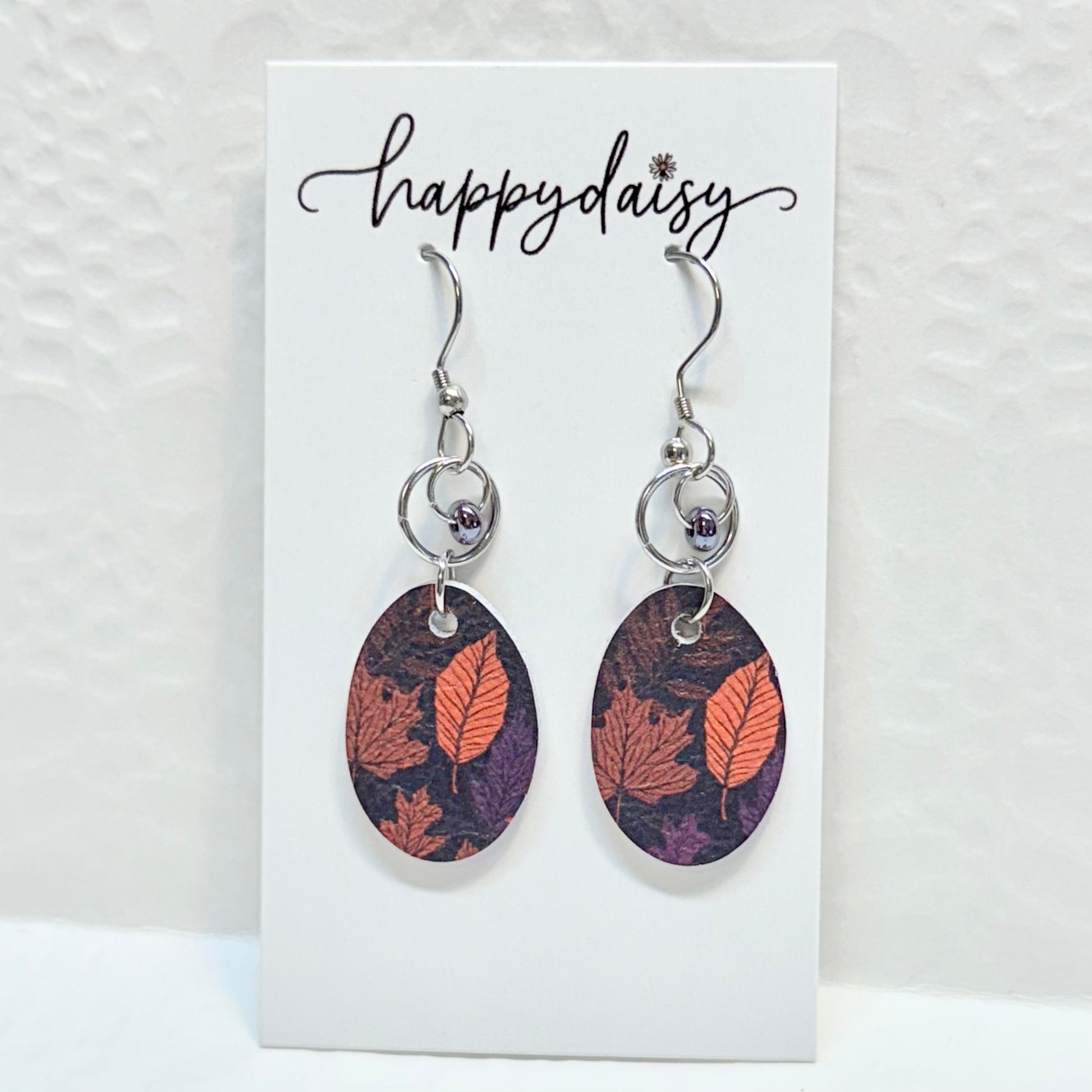 Welcome the fall season with our Fall Leaf Print Leather Earrings. Pair these earrings with your favorite fall outfits, from cozy sweaters to chic blazers. Their warm colors and floral design make them a perfect accessory for pumpkin patches, fall festivals, or simply enjoying a crisp autumn day. They have stainless steel ear wires and are so lightweight, you'll forget you're wearing them!
