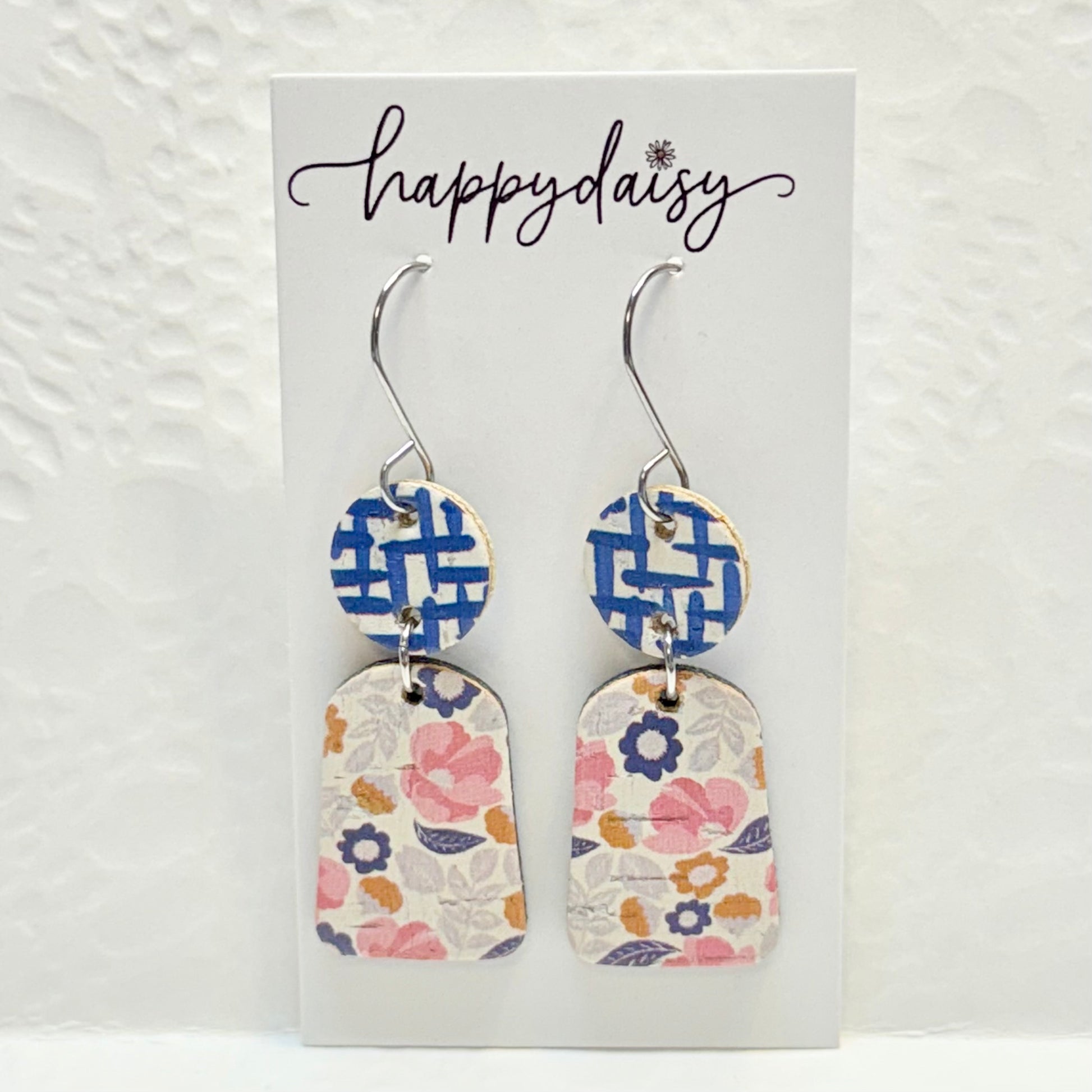 Fall Floral Print Cork on Leather Lizzie Earrings