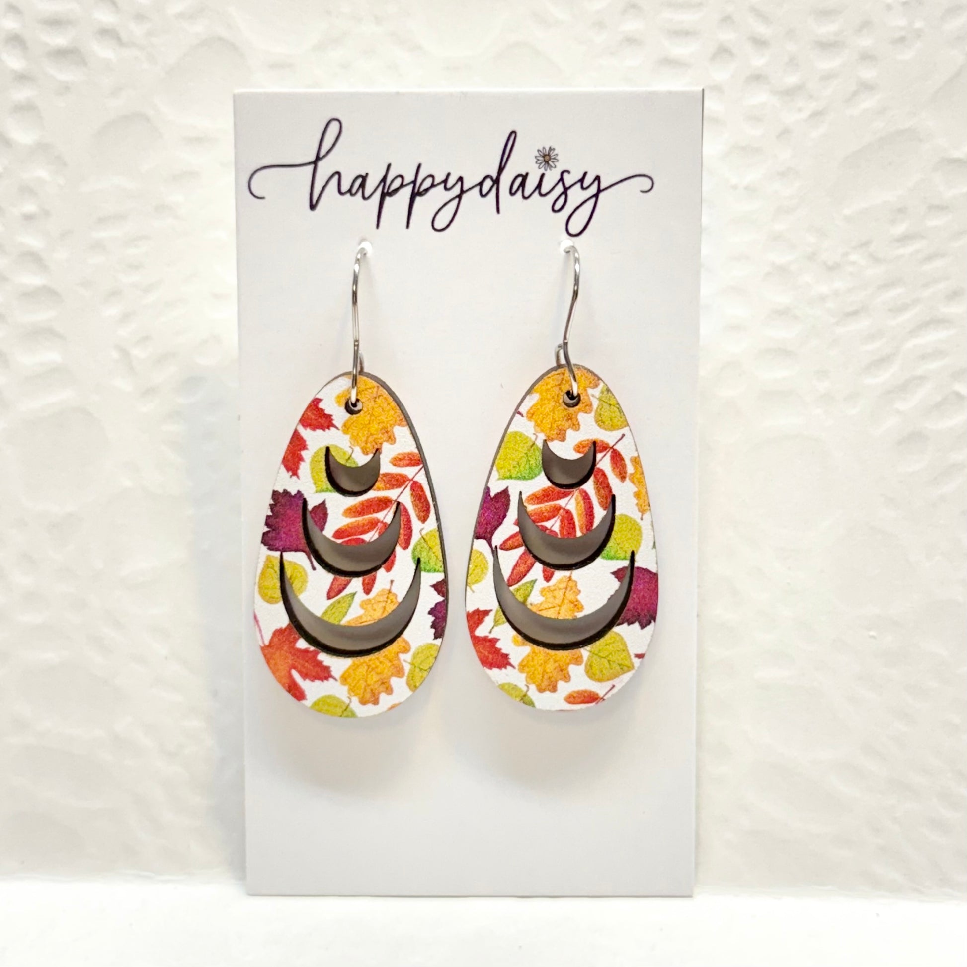 Welcome the fall season with our Fall Leaf Print Wooden Earrings. Pair these earrings with your favorite fall outfits, from cozy sweaters to chic blazers. Their color and design make them a perfect accessory for pumpkin patches, fall festivals, or simply enjoying a crisp autumn day. They have stainless steel ear wires and are so lightweight, you'll forget you're wearing them!