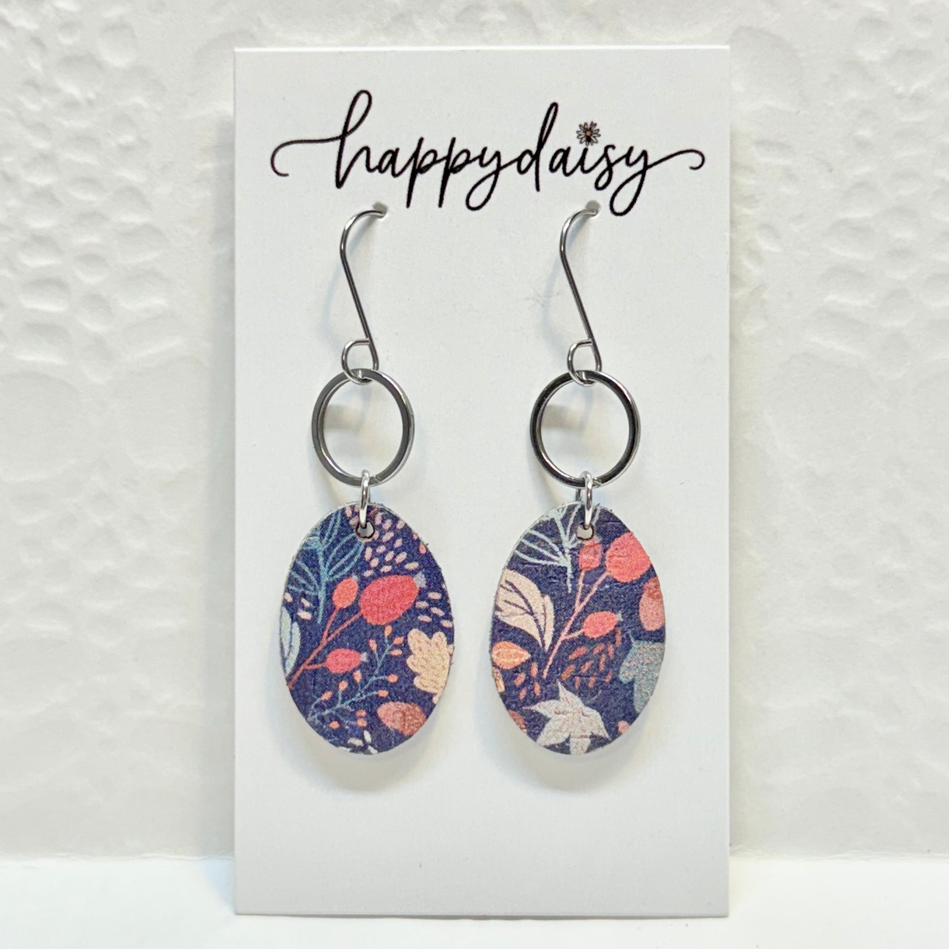 Fall Leaf Print on Navy Cork on Leather Earrings
